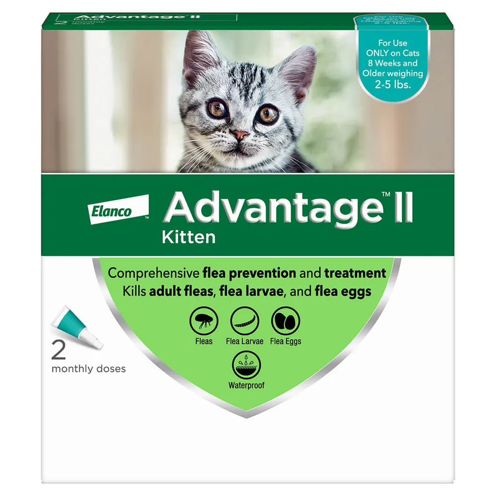 Directions: For use on cats 8 weeks and older. Do not apply to cats or kittens weighing less than 2 lbs. Part hair on neck at base of skull until skin is visible and squeeze tube to expel entire contents directly on skin. Under normal conditions, product is effective for 1 month; in cases of severe flea infestation, retreatment of pet may be necessary earlier than 4 weeks. Do not retreat more often than once every 14 days for kittens and once every 7 days small and large cats. After flea control is attained, return to a monthly retreatment schedule.