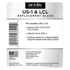Replacement blade for Tackmate (US-1) and EasyClip Li (LCL) Clippers. Carbon steel for a dependable, long-life blade that stays sharp. Chrome finish. Adjusts from 000-1 (#30-15-10). Leaves hair 1/50″ – 3/32″ (0.5 – 2.4mm). Sold as a set; top and bottom blades included.