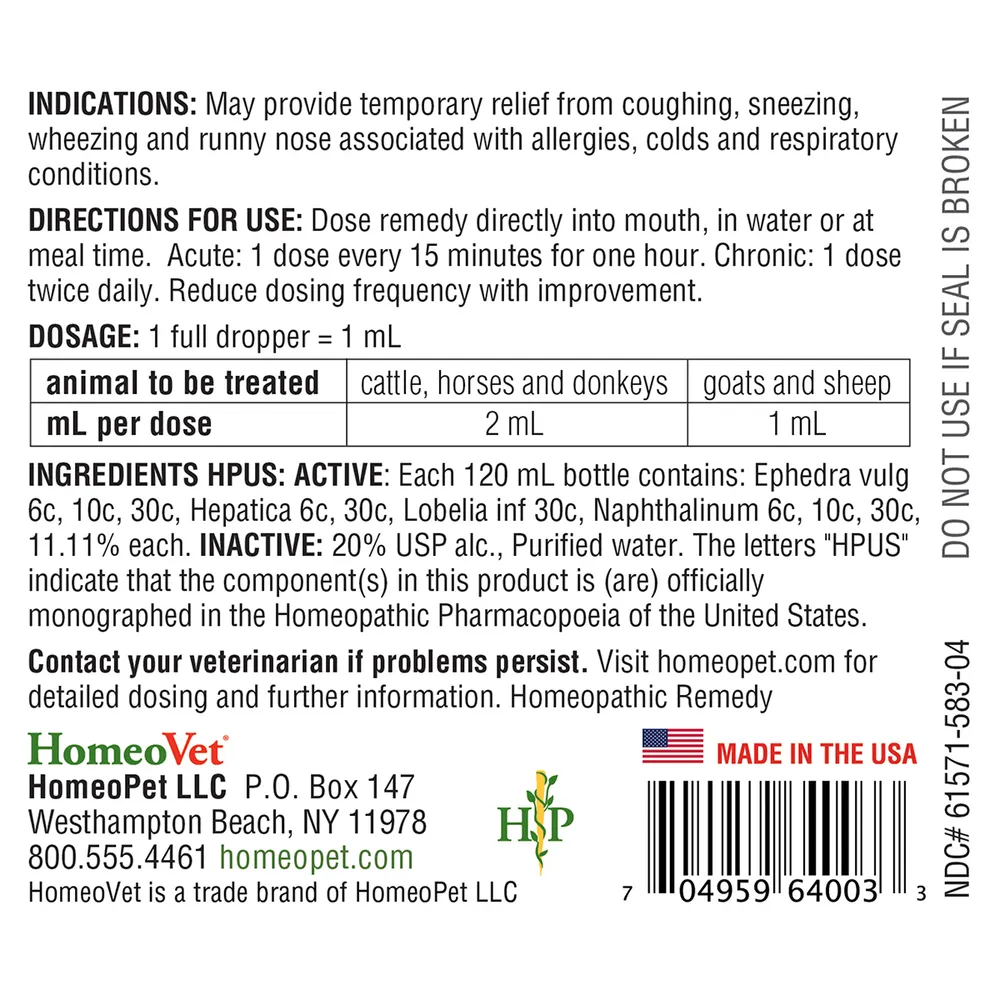 Helps with coughing, sneezing, wheezing and runny nose associated with allergies, colds and respiratory conditions.Â