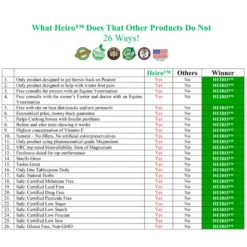 Horse have chronic foot pain? Can’t be on pasture? Help your horse with HEIRO – a proprietary blend of 8 tasty herbs, vitamin E and magnesium to safely and naturally combat elevated insulin. If your horse is suffering from signs of insulin resistance (laminitis, cresty neck, on Cushing meds but still sore, easy keeper–staying large on little food, fat pockets, founder history, senior horse health issues) try HEIRO for 30days – your satisfaction is 100% guaranteed or your money back!