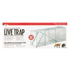 Single door live animal traps are manufactured from heavy-duty galvanized wire mesh with steel reinforcement. Spring-loaded door, protected handle and automatic locking system provide safety for animals and humans.