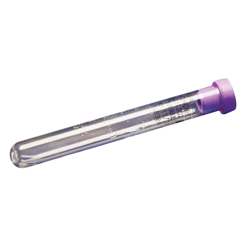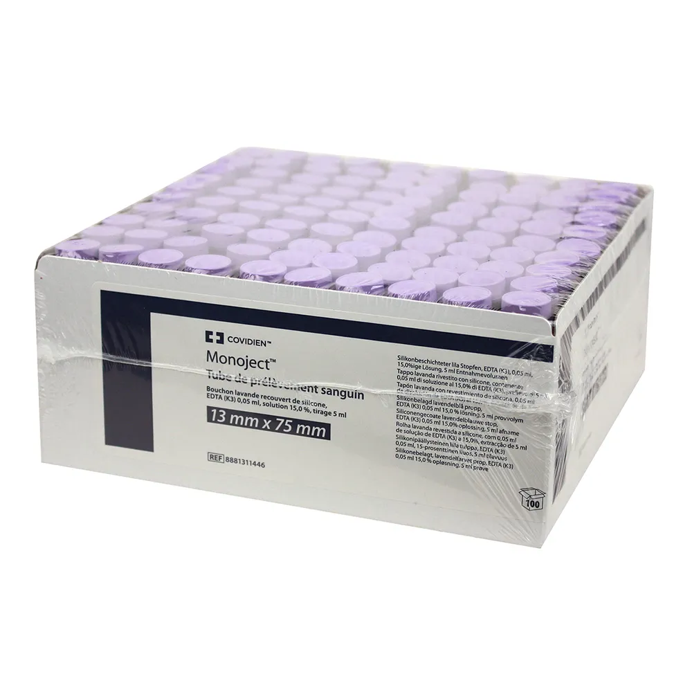 For procedures requiring plasma or whole blood, general hematology and certain chemistry procedures, non-silicone coated tubes feature lavender stoppers and contain liquid additive EDTA (K3) [0.10 ml, 15% solution], 16 mm, 5 ml draw.Â