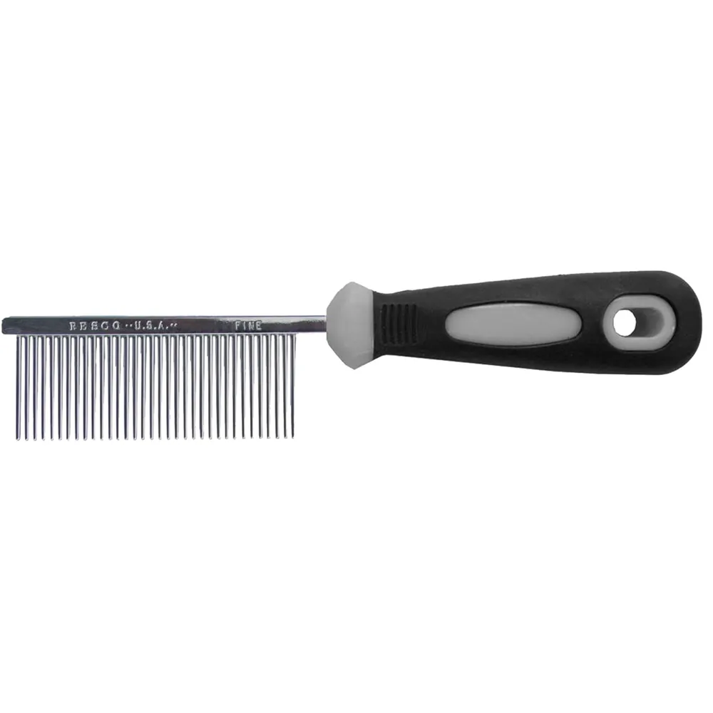 1″ hardened steel pins are pressed into a solid brass shank to keep pins from breaking or bending. Entire comb features precision nickel plating. Polypropylene handle designed for comfort and control. Teeth are tapered and rounded to allow for smooth gliding through any coat while stimulating skin. Measures 7″L.