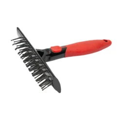 Lime green and red colors allow for easy visual while working with all hair colors. Soft, gentle grade of synthetic bristles prevents brush from being too harsh, as compared to stiffer roto brushes that can scratch and irritate hide. Lock nut keeps brush from spinning loose of drill (not included).Â