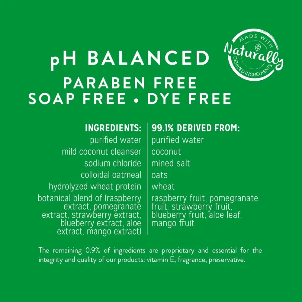 Cleans pets even after the messiest of adventures! Raspberry and mango provide a deep luxurious clean while oatmeal and coconut replenish natural moisture for a coat that is soft and huggable. Natural protein and raspberry extract replenish the natural moisture balance of the skin and coat, leaving behind a shiny, luxurious coat that smells oh-so-nice. Routine bathing leaves the skin and coat soft, shiny, and looking great. Safe for routine bathing when used as directed. For dogs and cats 12 weeks and older. Â