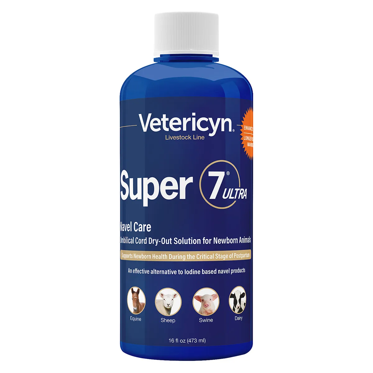 Dip – dip navel within 30 minutes of birth while navel is still wet. Fill teat dip cup and totally submerge umbilical cord by gently pushing teat cup against the abdomen to coat and stain entire navel area. May use again 12 hours later to speed drying if necessary.