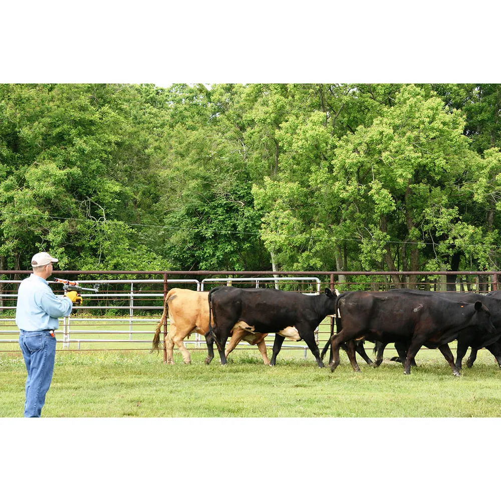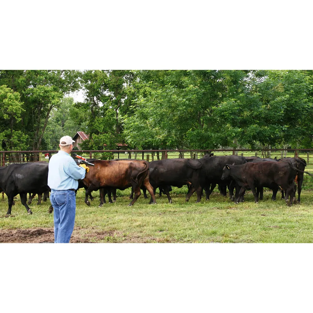 Simple-to-use, accurate, reliable applicator gun allows you to treat 100 headof cattle in a fraction of the time required by other methods. VetCaps can be applied 15-30 feet away and burstupon contact with the animal. You can quickly load the CO2-powered gun in the field without touching the insecticide in the VetCaps. Producer-controlled velocity offers use in a range of operation conditions and settings. Quiet, too – cattle quickly become accustomed to the sound.