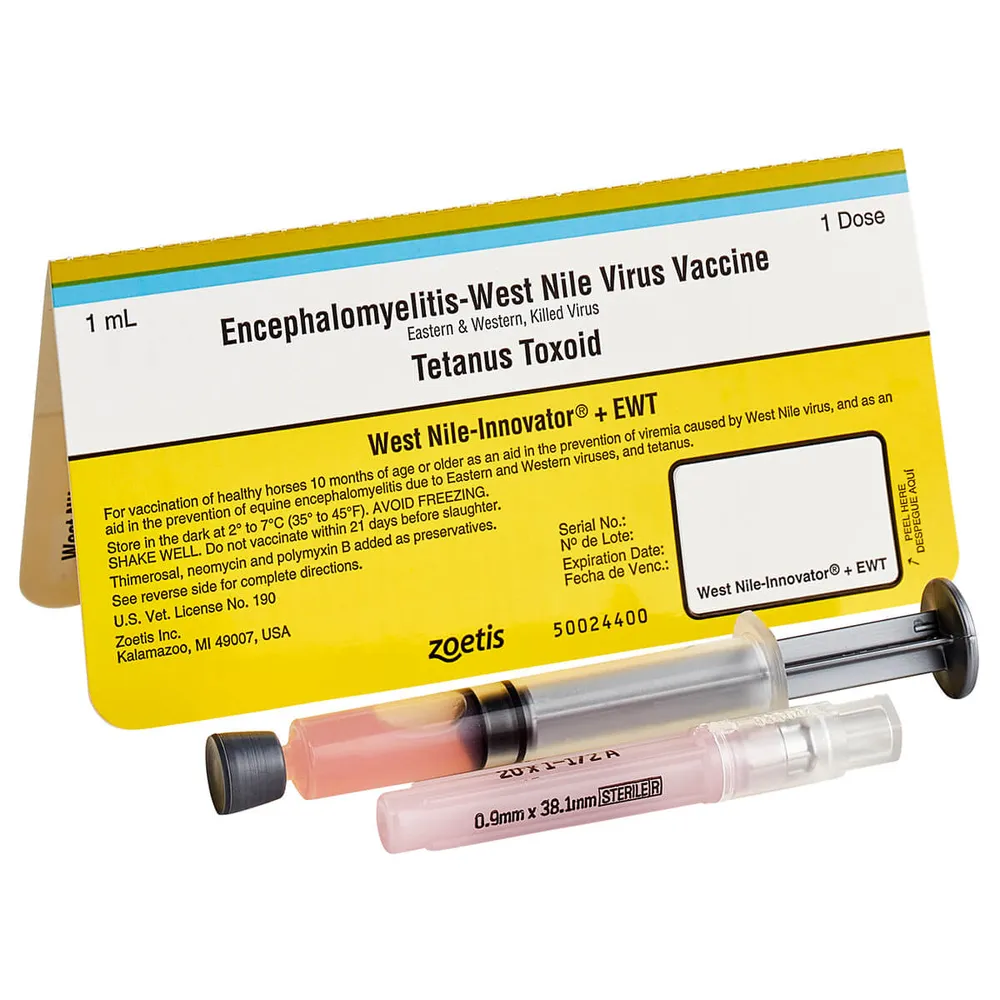 Equine West Nile Virus combination vaccine. For the vaccination of healthy horses as an aid in the prevention of viremia caused by West Nile Virus, and as an aid in the prevention of equine encephalomyelitis due to Eastern and Western viruses, and tetanus.